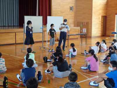北関東綜合警備保障株式会社(ALSOK)の皆様には、お忙しい中、子供たちのためにご指導いただき大変ありがとうございました。子供たちは、あらためて登下校時や留守番時の危険について学ぶことができ、実践につながる貴重な時間となりました。