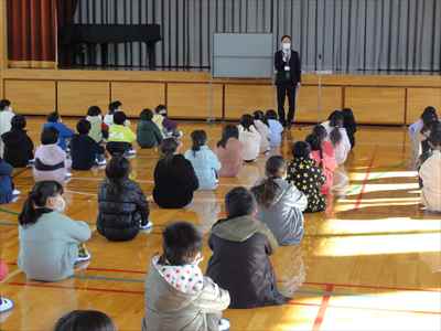 12月24日(金)、冬季休業前の集会を行いました。冬休み中は、学校で学んだことを振り返ったり、学習内容を整理したりしながら健康な日々を過ごしてください。また、家族との時間を増やし心のつながりをもつ絶好の期間でもあります。時間を有効に使い、有意義な冬休みにしていただければと思います。