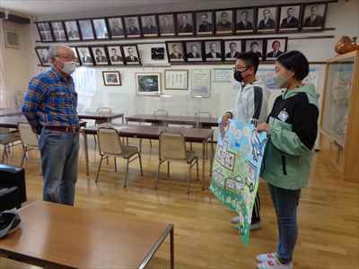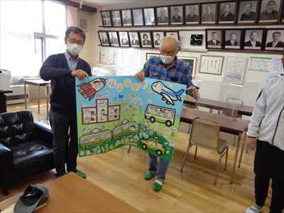 学校や地域へ感謝の気持ちをかたちで表現しました。昨日、坂上地区コミュニティ推進協議会会長が来校してくださり、6年生の代表児童が掲示物(一人一人が描いた似顔絵)を渡しました。坂上コミュニティーセンターをご利用の際はご覧ください。