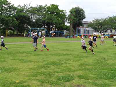 縦割り班活動を通して、異学年との交流を深め、お互いに協力し合って活動を進められることを目指しています。坂小タイムの時間に縦割り班で “おにごっこ、タイヤ跳びジャンケン、けいどろ、だるまさんが転んだ、ドッジボール” を行いました。