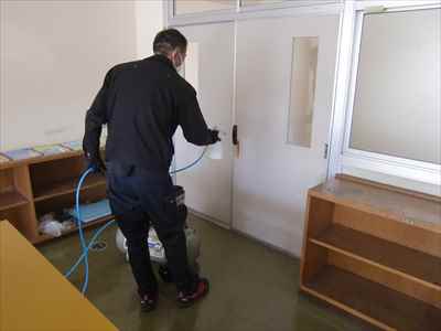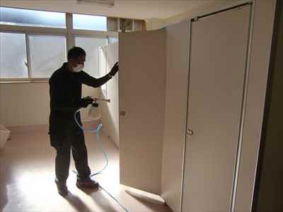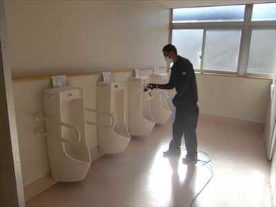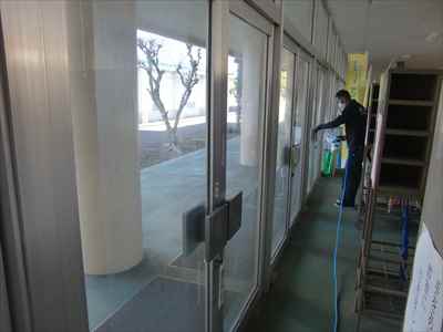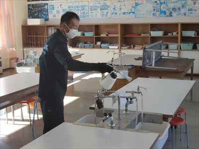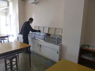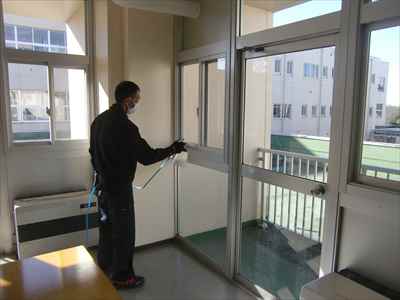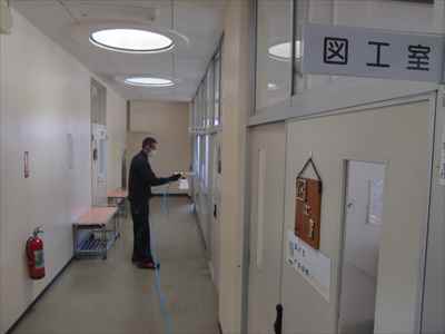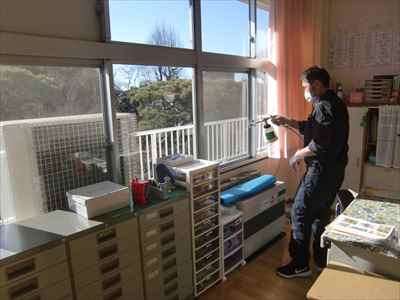 主な作業場所として、教室(普通・特別を含む)の照明スイッチ、窓の鍵、窓枠・トイレのドアノブ、流水レバー、便座・昇降口のドアなど、多くの場所に光触媒コーティング作業をしていただきました。