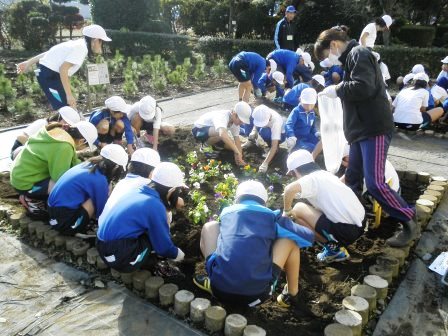 全校生による春花壇づくりが行われました。パンジーの苗やチューリップの球根などを,来年の学年の花壇に植えました。大きく育つといいですね。