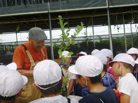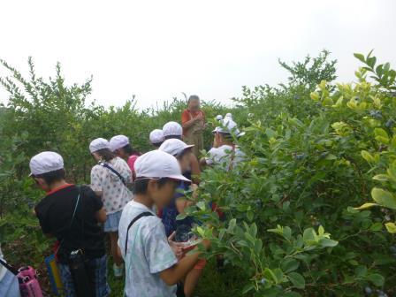 2年生が生活科の学習で、地域のブルーベリー畑を見学してきました。