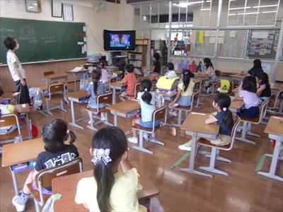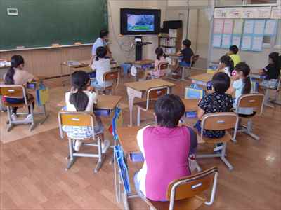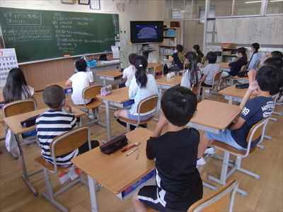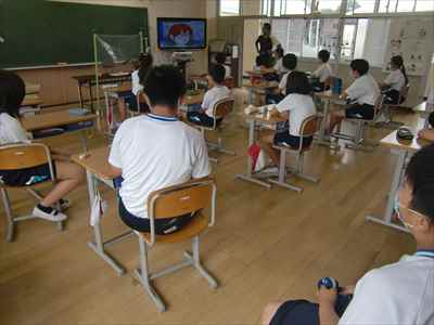 Web会議ツール「Zoom」を活用して、室内での活動に変更しました。近年、頻発する竜巻への心構えをもたせるために、映像を通して竜巻とはどのような現象であるか確認しました。子供たちは、“竜巻の前ぶれを見つけたら建物の中に避難すること” や “建物の中では窓から離れ、机の下などに入って頭と首を守ること”など、映像の視聴後に振り返りを行い、竜巻から身を守ることを学びました。