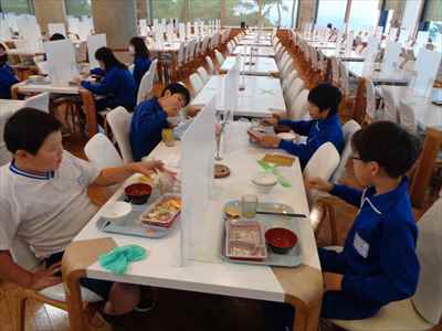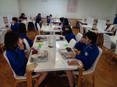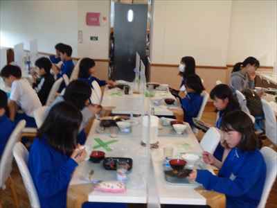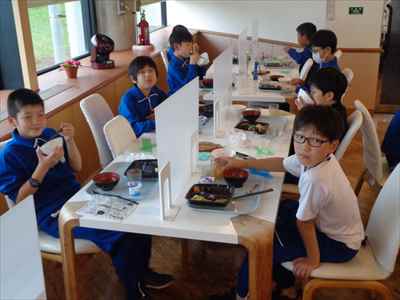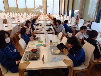 班ごとに分かれて食べました。