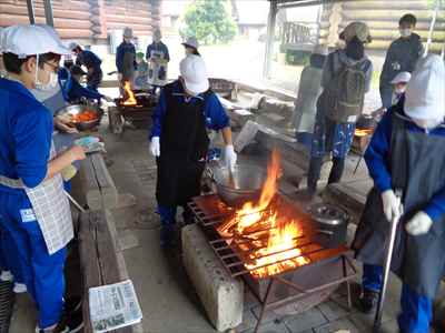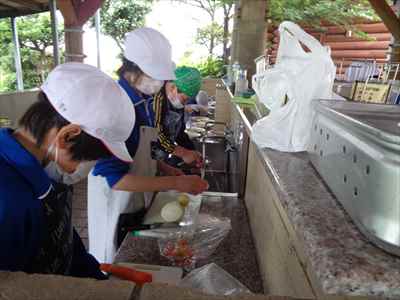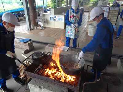 3つの班にわかれ、野外調理“ポークカレーづくり”に挑戦しました