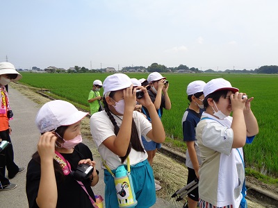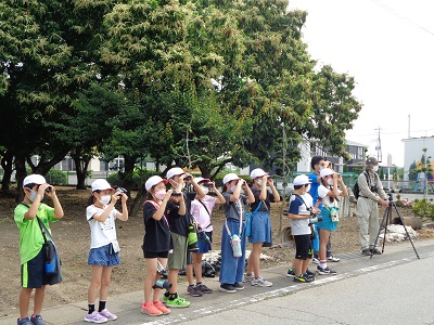 学区内にどんな鳥がいるのかを調べるために日本野鳥の会の講師の方が来てくださり、観察に行きました。