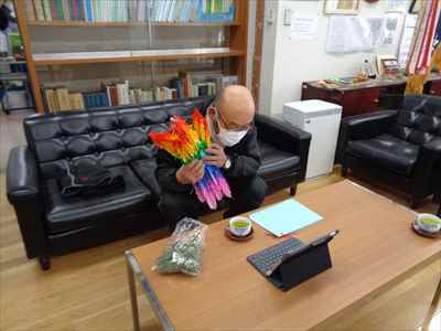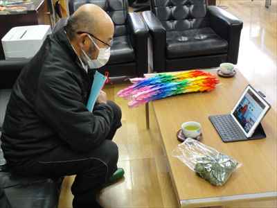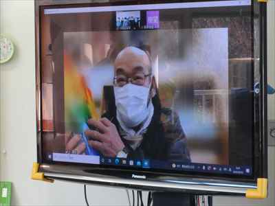 5月7日(金)から5年生の総合的な学習の時間で、「日本の主食である米や野菜を育てて料理を作ろう」という学習活動を始めました。学校支援ボランティアティーチャーの上野長一様、礼子様をはじめ、水谷正一先生、関係者の皆様のご指導・ご支援により、子供たちは「米づくり」について、実物を見たりさわったりするなど体験的な学習をすることができました。2月25日(金)は、上野様にシュロの葉細工作りのご指導いただく予定でしたが、コロナ禍のため学習活動は行いませんでした。これまでの学習活動で大変お世話になりましたので、5年生の児童がZoomを活用してオンラインで感謝の言葉を述べました。