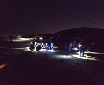 ナイトハイクに出かけました。砂浜で、貝殻を拾いました。