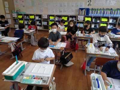 1年生の図画工作の授業において、「せんの かんじ いいかんじ」の単元で筆で絵の具の線をかく学習を行いました。今回、学習支援ボランティアとして保護者の方が参加してくださり、子供たちの学習活動においてご支援いただきました。おかげさまで、担当の先生や子供たちは、安心して学習を進めることができました。大変お世話になりました。ありがとうございました。