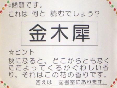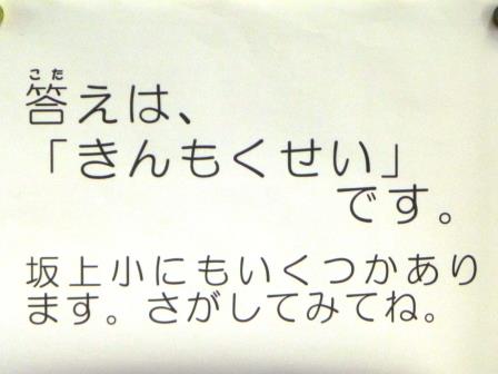 季節のクイズが児童の昇降口などに張り出されていました。