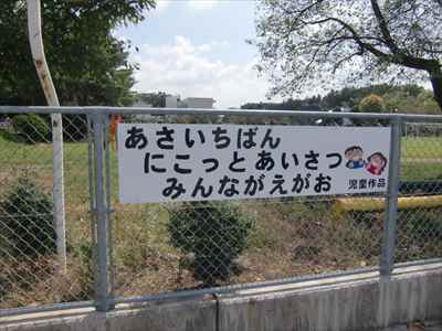“あさいちばん にこっとあいさつ みんながえがお”