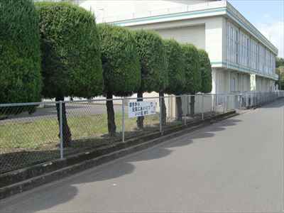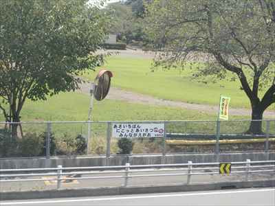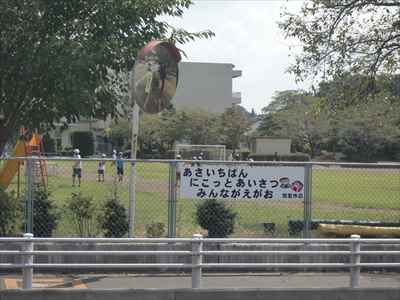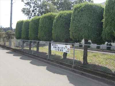 ◯東側フェンスに取り付けた児童作品のあいさつ標語