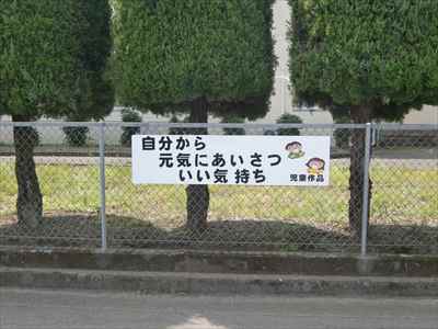 今年度は、前年度に作成した児童のあいさつ標語を掲示ボードに記載し、本校の東側と北側フェンスに取り付けました。本校周辺をお通りの際は、ぜひご覧ください。