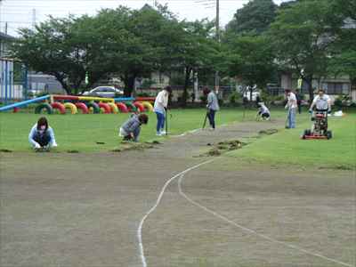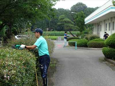 前日の土曜日が悪天候のため、7月5日(日)にPTA整備部とPTA執行部の皆様が参加してくださり、第1回PTA奉仕作業を行いました。今回は、芝刈り・樹木の剪定・芝生の根切り等、多岐に渡る作業をしていただきました。大変お世話になりました。