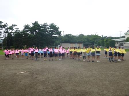 本校の創立140周年を記念して、航空写真を撮影しました。校庭に描かれた図案の上に、青色・黄色・ピンク色のエプロンをかけて並びました。どのような写真が出来上がるか、完成写真も後日掲載します。お楽しみに。