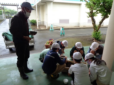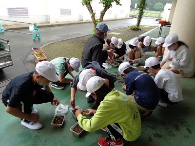 生卵も浮くような塩水の中に入れても沈むもみは、中身がしっかりと詰まっていていいもみであることを教わりました。次は、自分たちで目出ししたもみを蒔きます。