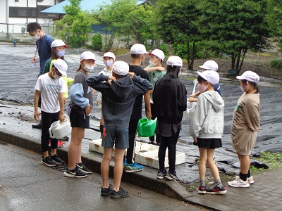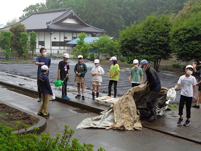 その後、土が乾いたり鳥に食べられたりしないように、長一先生がビニールや網をかけてくれました。