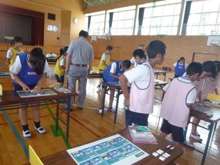 日産自動車の方を講師に迎え、5年生が「モノづくりキャラバン」を体験しました。グループに分かれ、実際に流れ作業でミニカーを組み立てながら、工夫・改善・協力・チームワークの大切さについて学びました。