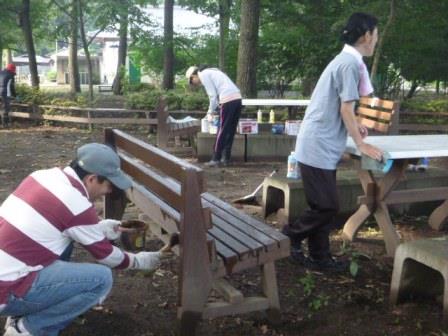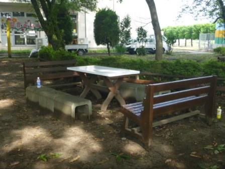 “なかよしの森”のテーブルやベンチにもペンキが塗られ、きれいになりました。