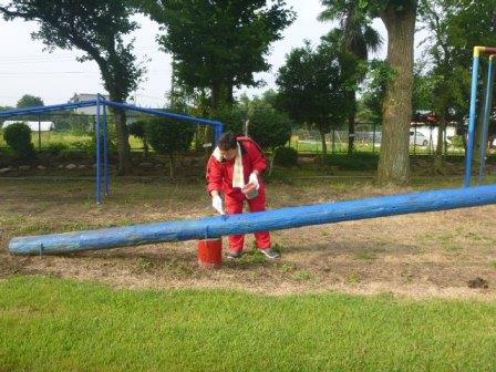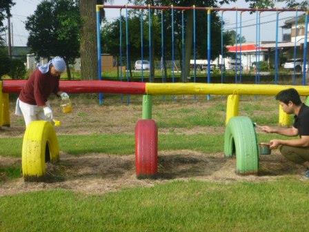 校庭の遊具にもペンキが塗られました。子どもたちの喜ぶ顔が目に浮かびます。
