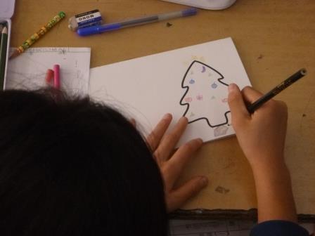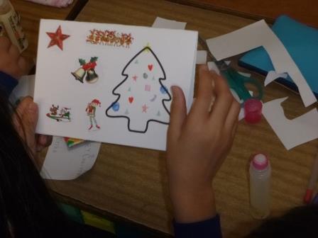 メッセージを書いたり、イラストを切り抜いて張ったりして、すてきなクリスマスカードが出来ました。