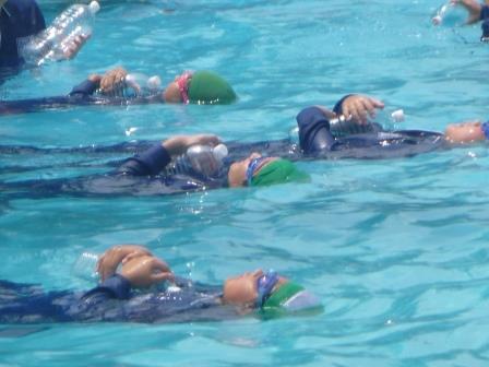今日は、5・6年生が着衣水泳を実施しました。さすが高学年!ペットボトルを利用して、みんな上手に浮かんでいました。