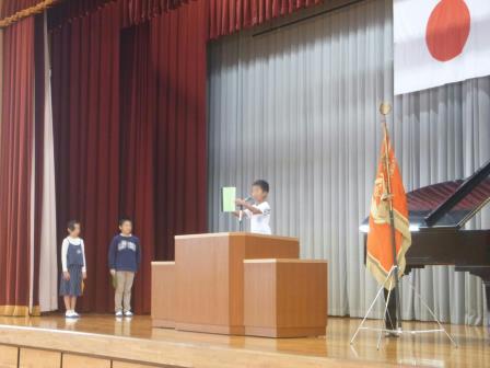 2・4・6年生の代表児童が2学期の目標やめあての発表をしました。