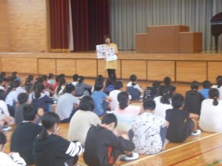 学習面について係の先生が、ヘレン・ケラーの言葉「はじめはとても難しいことも、続けていると簡単になります。」から、継続することの大切さについて話しました。