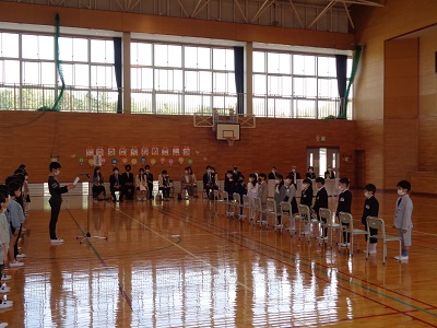 児童代表歓迎の言葉。代表の6年生は、落ち着いて上手に歓迎の言葉を述べていました。