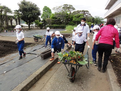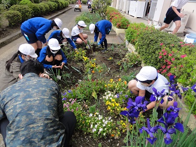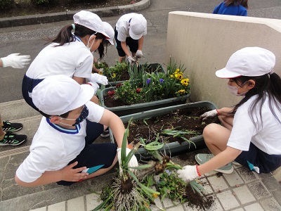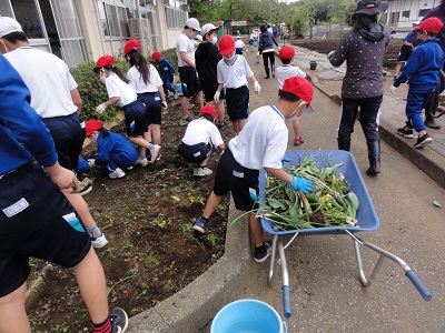 今日の活動は、花壇の除草と冬の花や球根を抜くことです。