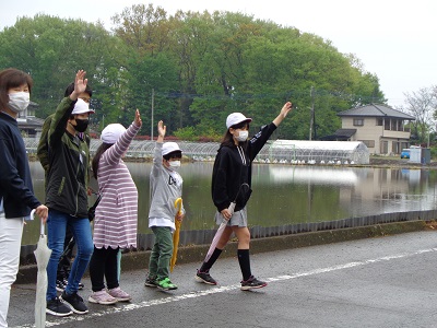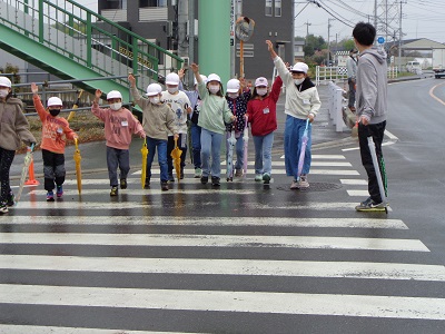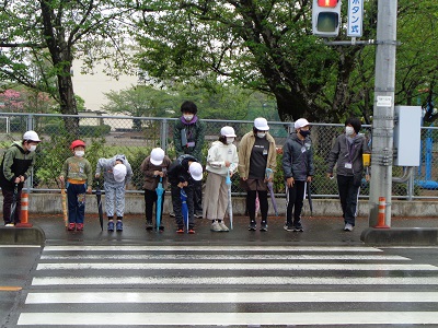 渡り終わったら、止まってくれた車にお辞儀をします。