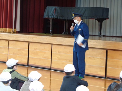 全員戻った後は、体育館に集合して警察の方からお話をいただきました。