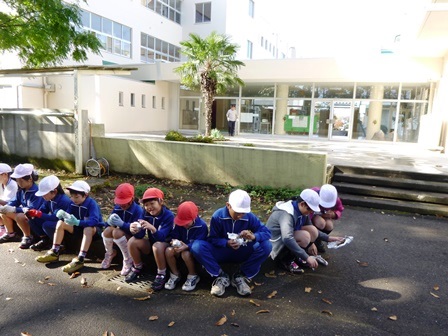 縦割り班による焼きいも大会が行われました。坂小応援団の方々も駆けつけ,朝から火の準備をしてくださいました。子どもたちは,縦割り班ごとに協力しながら,サツマイモにアルミ箔を巻きました。火に入れた後は,校庭で落ち葉拾い。そして,焼き上がったおいもをみんなでいただきました。とってもおいしかったです。