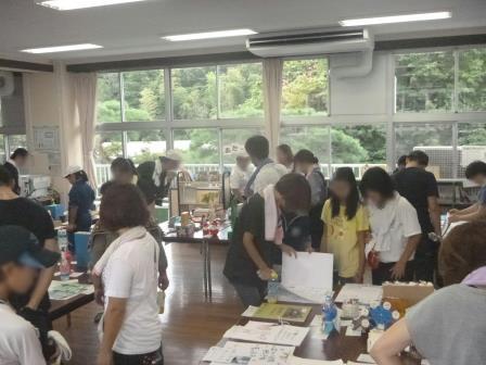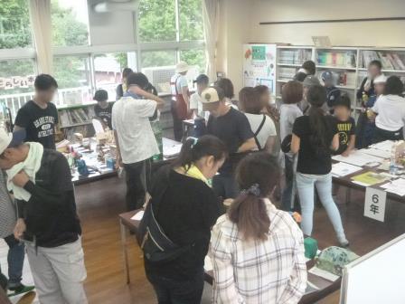 図書室で夏休み作品展を開催しました。PTA奉仕作業終了後、夏休み中の子どもたちの力作をご覧いただきました。
