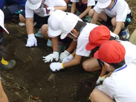 収穫したさつまいもは、11月の収穫祭で焼きいもにしてみんなで食べます。