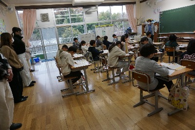収穫祭では、始めに、縦割り班ごとに校舎内に隠されたクイズを探して答える「おいもほくほくクイズ大会」を行いました。