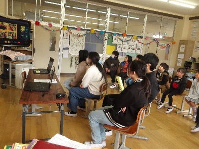 今日は卒業生を祝う会を行いました。スライドショーを見たり、6年生クイズやゲームなどを行ったりしたあと、6年生には下級生からのメッセージが渡されました。5年生を中心に下級生が一生懸命準備してくれました。